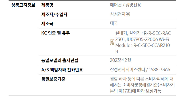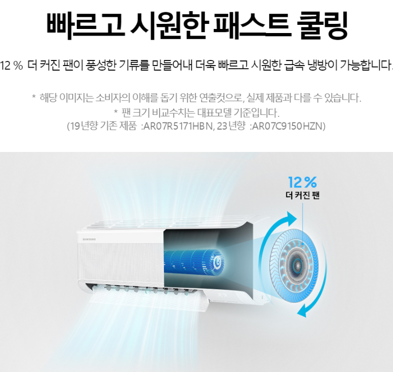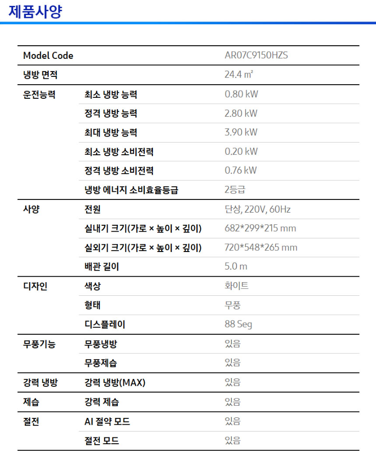 삼성벽걸이에어컨 7평형 냉방전용 인버터 AR07C9150HZ