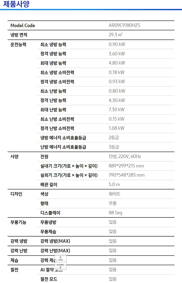 삼성벽걸이에어컨 9평형 냉-난방전용 인버터 AR09C9180HZ