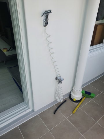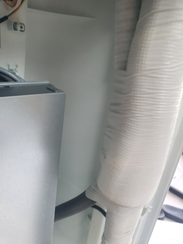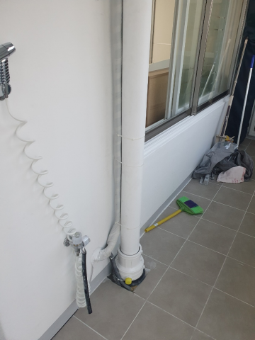 ( 물호수 이탈 방지를 위해 배관과 물호수를 마감테이프로 고정사진 )