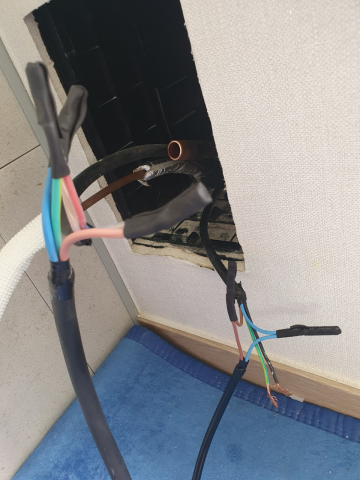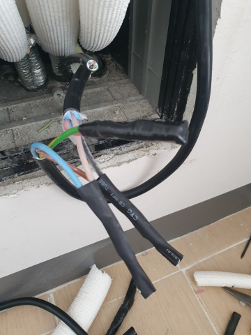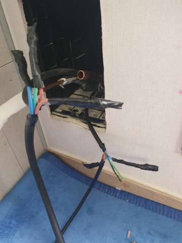 1차 압착슬리브사용 2차 고무수축튜브사용 3차 절연테이프로 마감을 필수작업으로합니다